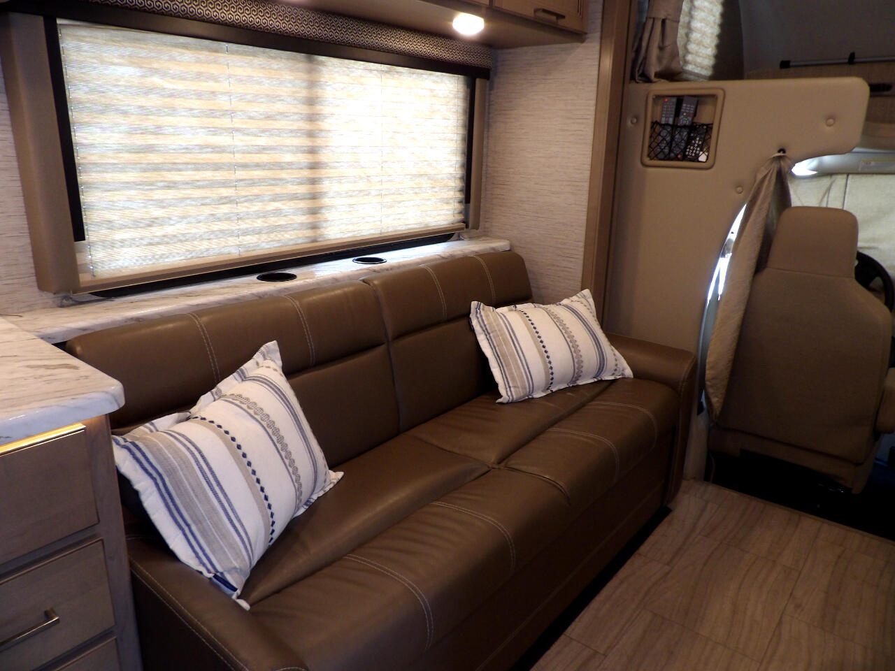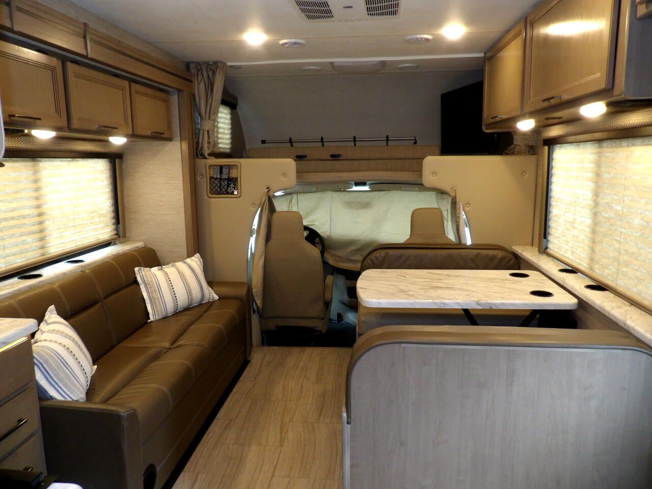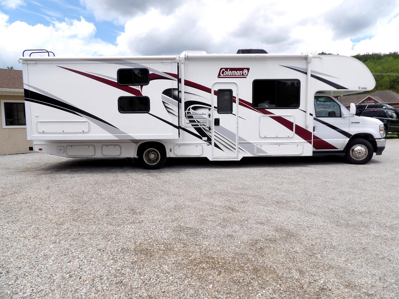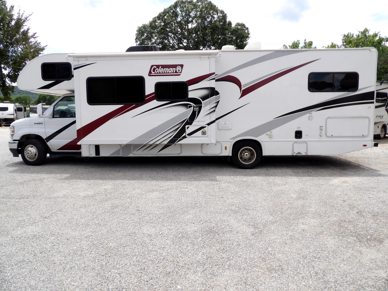 Details: Introducing the 2021 Thor Coleman 30CM, the perfect balance of power, durability, and luxury for your next adventure. Built on a robust Ford E-Series chassis with a powerful 7.3L Triton V8 engine, delivering 325 horsepower and 468 lb-ft of torque and just over 12,000 miles. This motorhome offers a smooth and reliable ride wherever your travels take you. Key construction highlights include a premium one-piece TPO roof, a sleek fiberglass exterior with eye-catching graphics, and a welded tubular aluminum roof and sidewall cage construction for long-lasting durability. Enjoy outdoor relaxation with the power patio awning and integrated LED lighting, perfect for any campsite. Step inside, and you’ll be greeted by a spacious interior featuring 84-inch ceiling height, residential vinyl flooring, and high-sheen Irish maple cabinetry. The well-equipped kitchen includes a recessed 3-burner gas cooktop, double-door refrigerator, and plenty of storage for all your needs. The Dream Dinette® booth and cab-over sleeping area provide ample space for dining and rest. As you enter the center of this 30CM you will find a smaller additional Dream Dinette® booth and a fold down bunk that offers even more dining and sleeping areas. Stay entertained with the 39” TV on a manual swivel, USB charging ports, and a satellite mounting backer on the roof. The systems control center, Onan® RV QG 4000 gas generator, and 100-watt solar charging system ensure you’re always powered up, no matter where you are. Whether you’re hitting the open road or planning a weekend getaway, the 2021 Thor Coleman 30CM has everything you need for a comfortable and memorable journey.