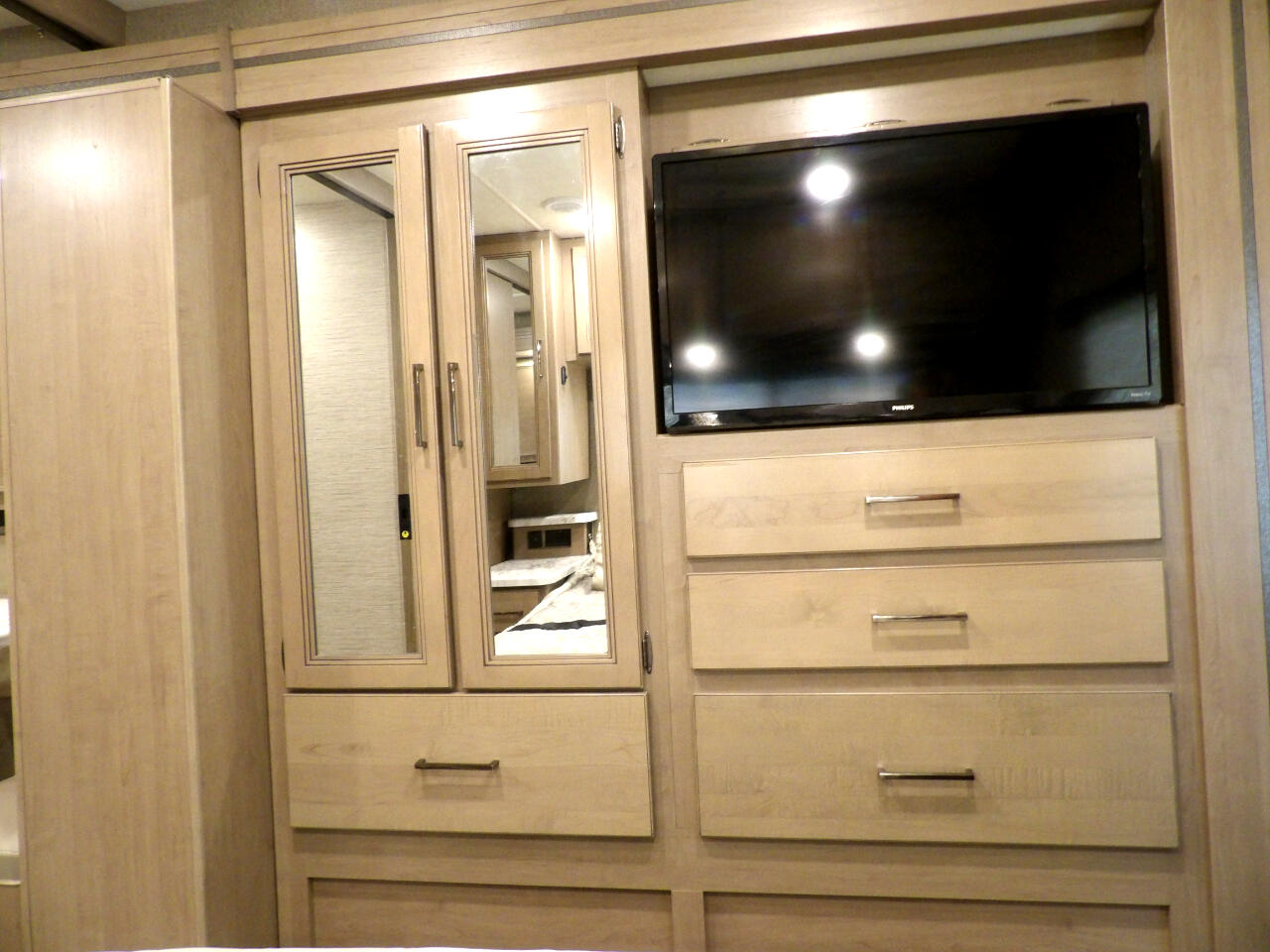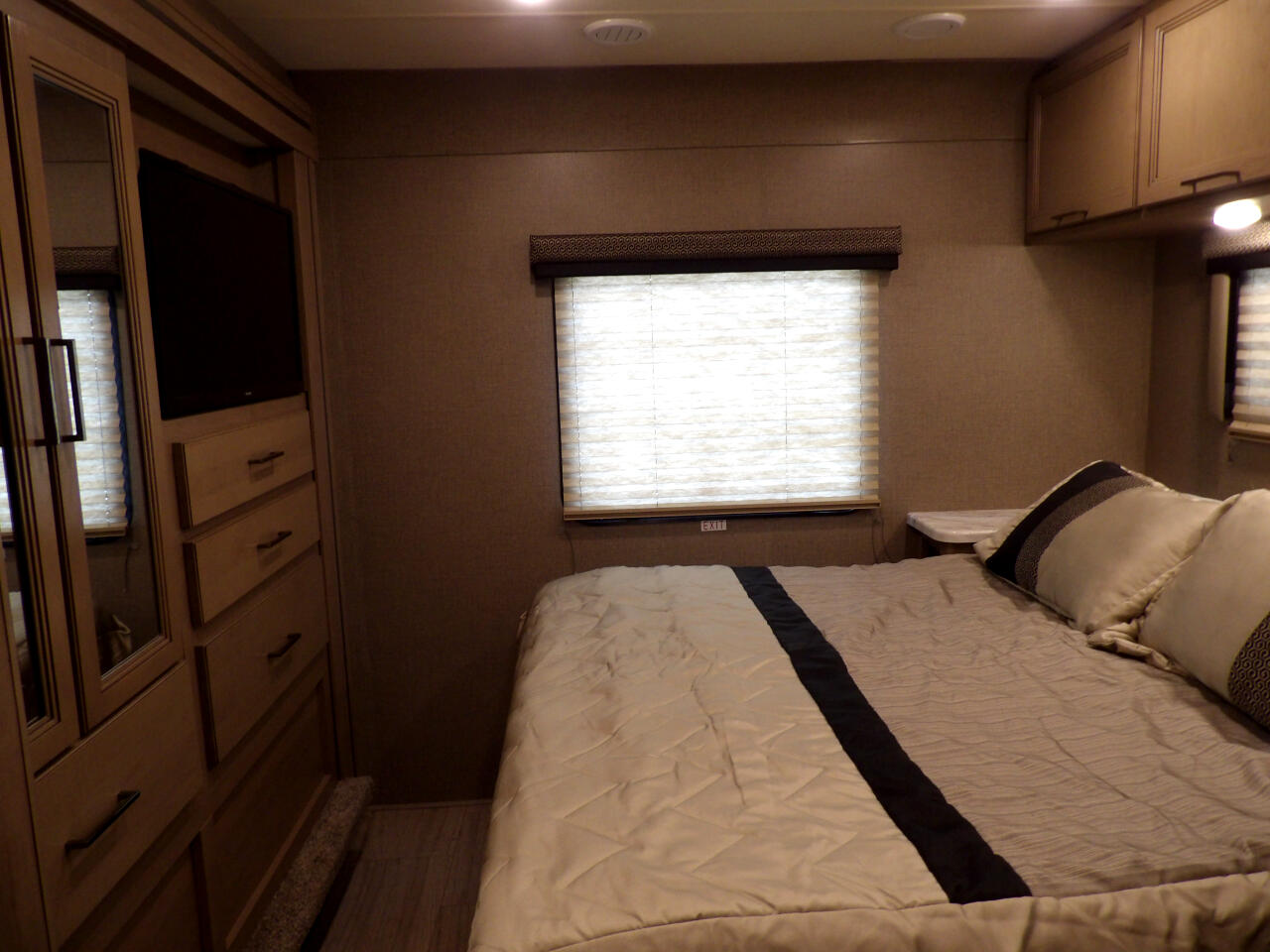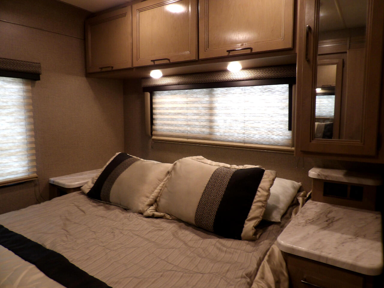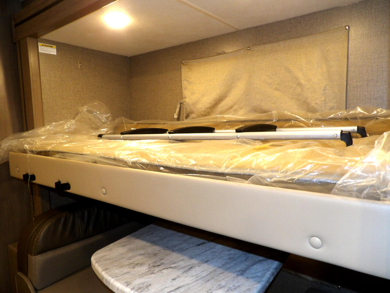 Details: Introducing the 2021 Thor Coleman 30CM, the perfect balance of power, durability, and luxury for your next adventure. Built on a robust Ford E-Series chassis with a powerful 7.3L Triton V8 engine, delivering 325 horsepower and 468 lb-ft of torque and just over 12,000 miles. This motorhome offers a smooth and reliable ride wherever your travels take you. Key construction highlights include a premium one-piece TPO roof, a sleek fiberglass exterior with eye-catching graphics, and a welded tubular aluminum roof and sidewall cage construction for long-lasting durability. Enjoy outdoor relaxation with the power patio awning and integrated LED lighting, perfect for any campsite. Step inside, and you’ll be greeted by a spacious interior featuring 84-inch ceiling height, residential vinyl flooring, and high-sheen Irish maple cabinetry. The well-equipped kitchen includes a recessed 3-burner gas cooktop, double-door refrigerator, and plenty of storage for all your needs. The Dream Dinette® booth and cab-over sleeping area provide ample space for dining and rest. As you enter the center of this 30CM you will find a smaller additional Dream Dinette® booth and a fold down bunk that offers even more dining and sleeping areas. Stay entertained with the 39” TV on a manual swivel, USB charging ports, and a satellite mounting backer on the roof. The systems control center, Onan® RV QG 4000 gas generator, and 100-watt solar charging system ensure you’re always powered up, no matter where you are. Whether you’re hitting the open road or planning a weekend getaway, the 2021 Thor Coleman 30CM has everything you need for a comfortable and memorable journey.