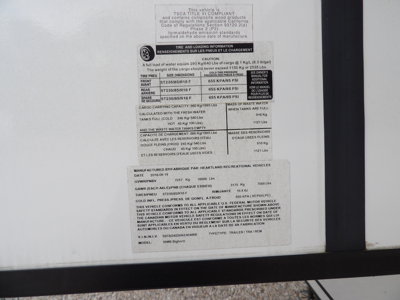 Vehicle Inquiry for 2019 Heartland Big Horn Traveler 39MB Weight 13840 lbs