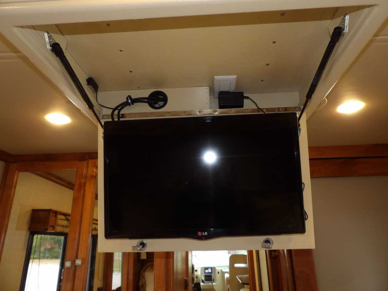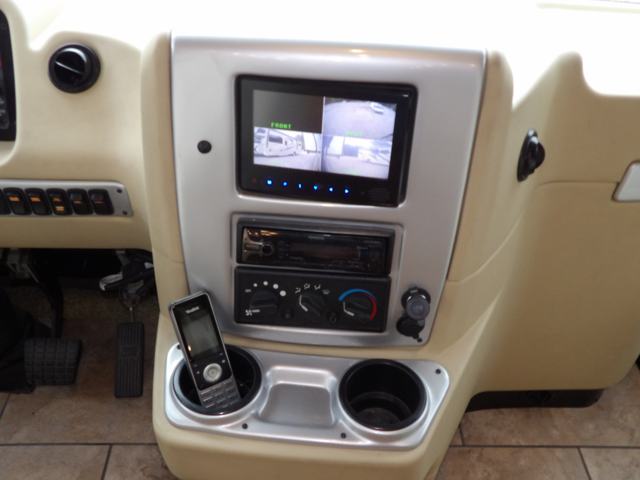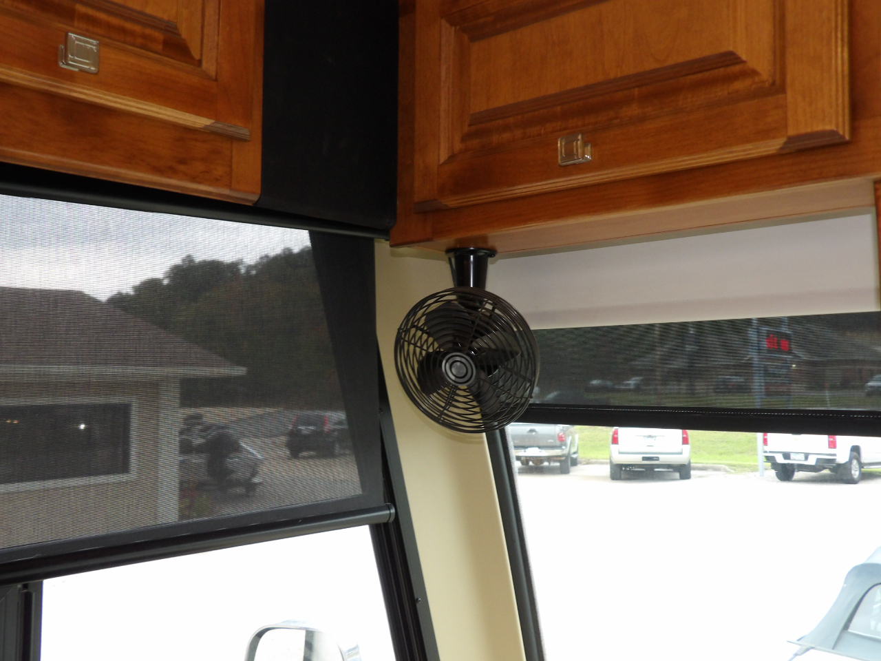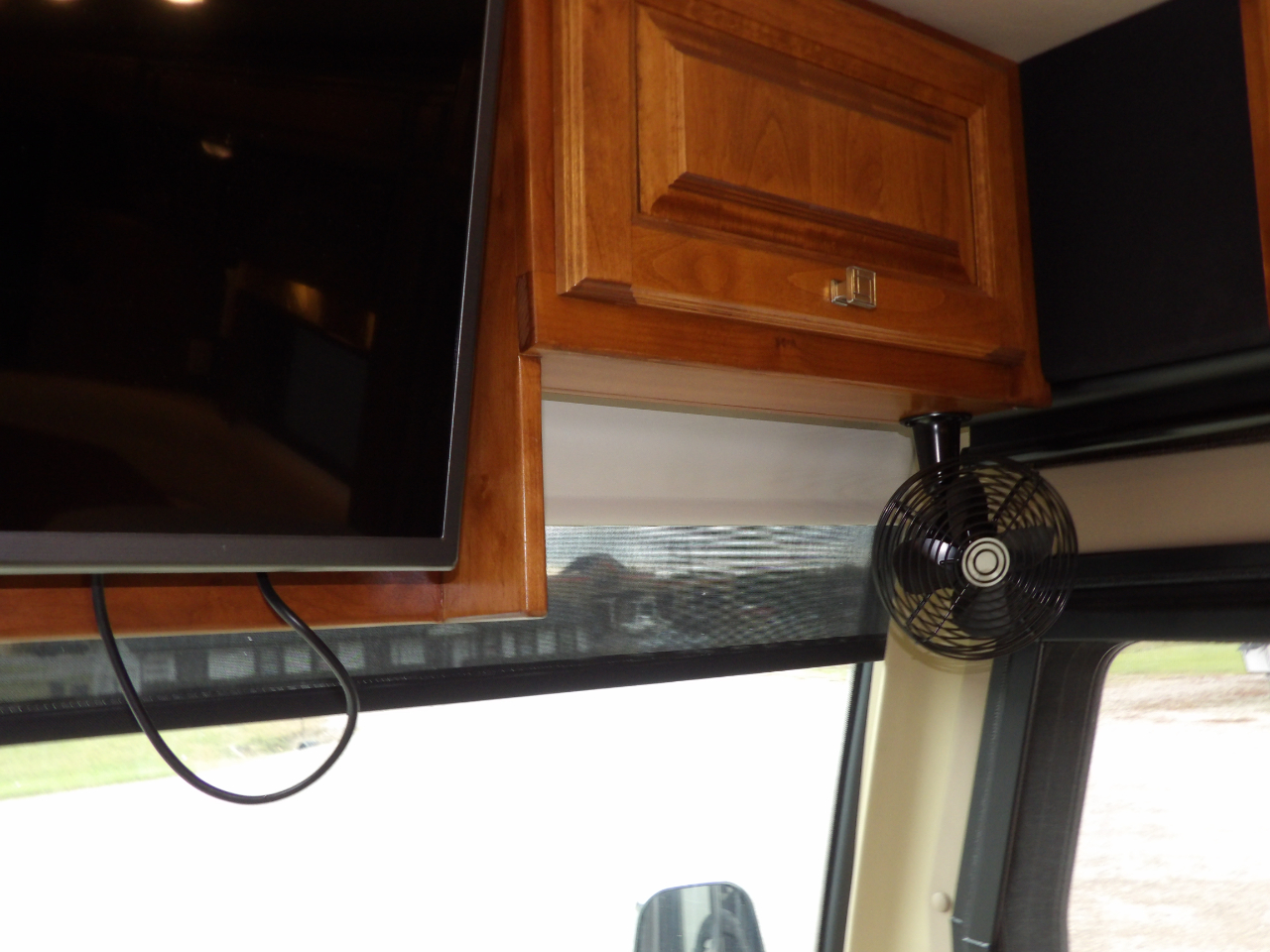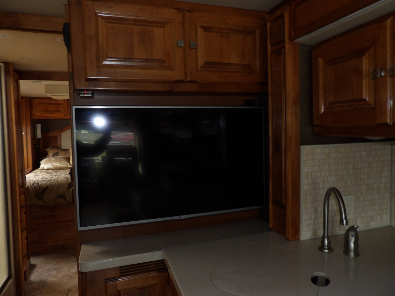 maintain a comfortable interior climate. Advanced safety features including CO, smoke, LP detectors, and fire extinguisher for peace of mind. Modern entertainment options with a built-in TV and exterior awning
