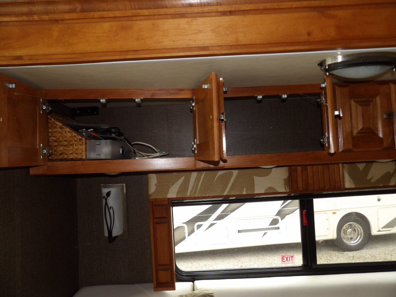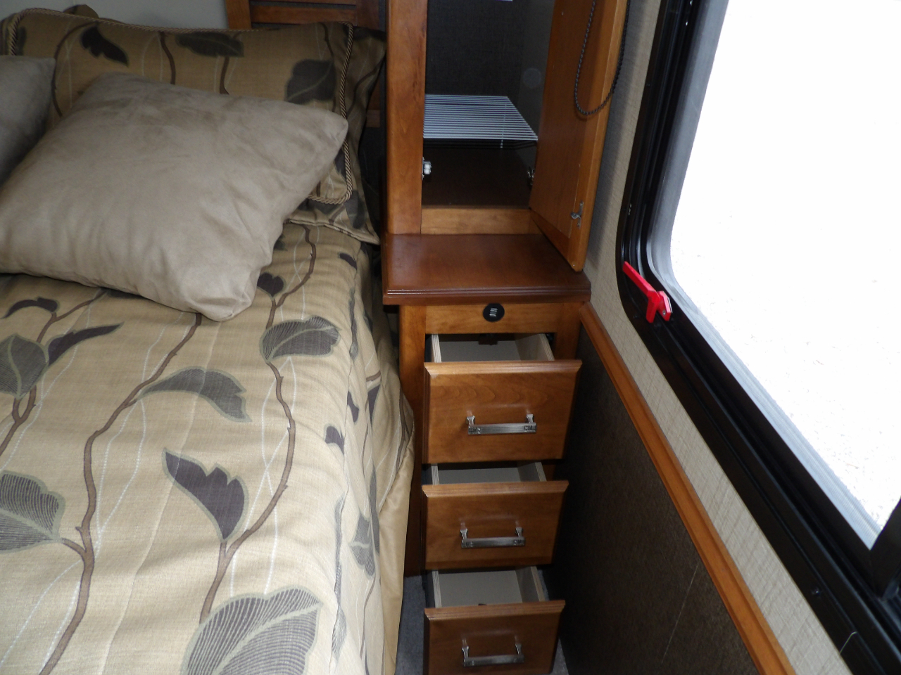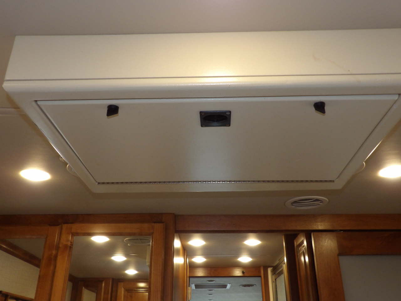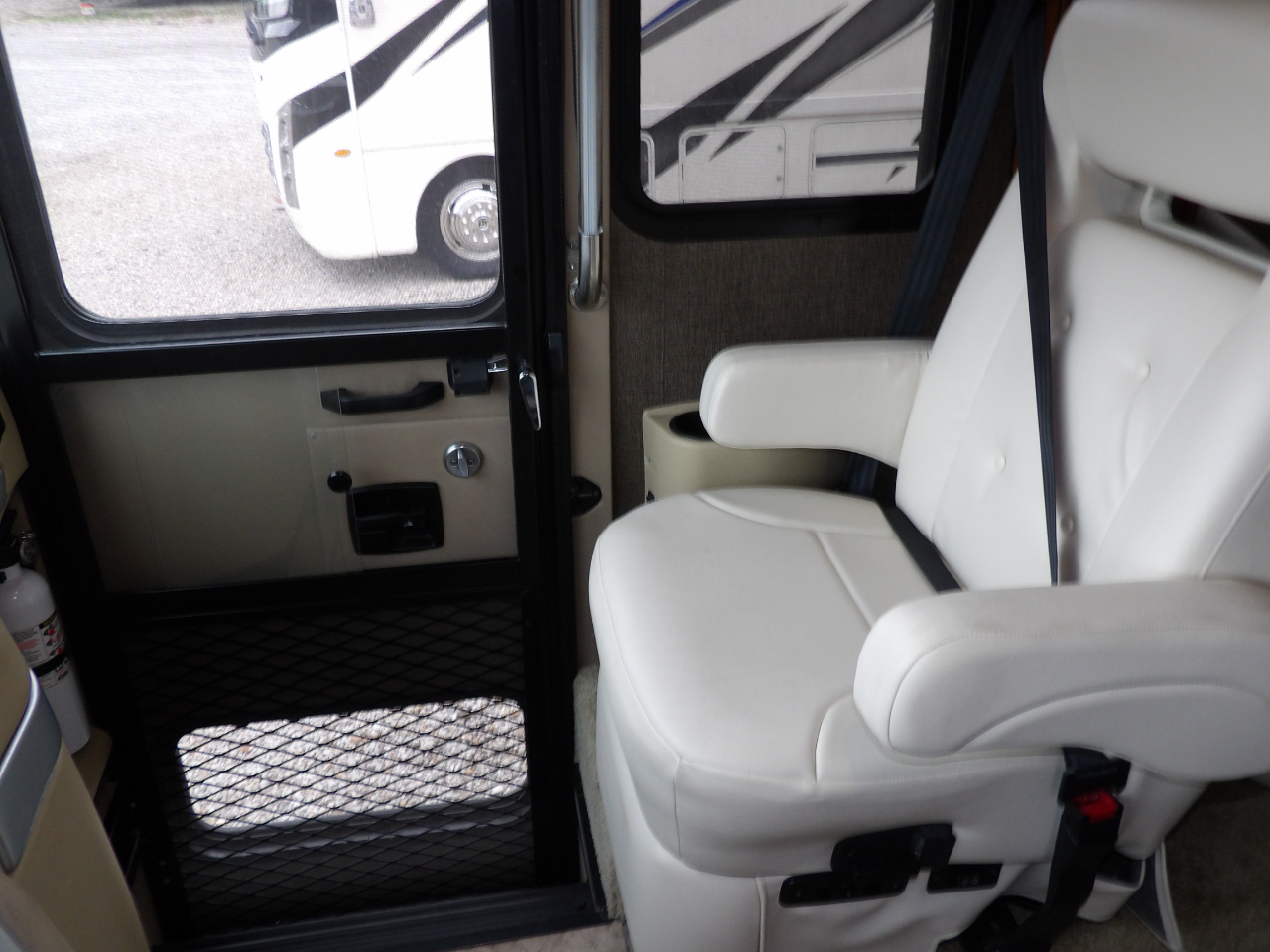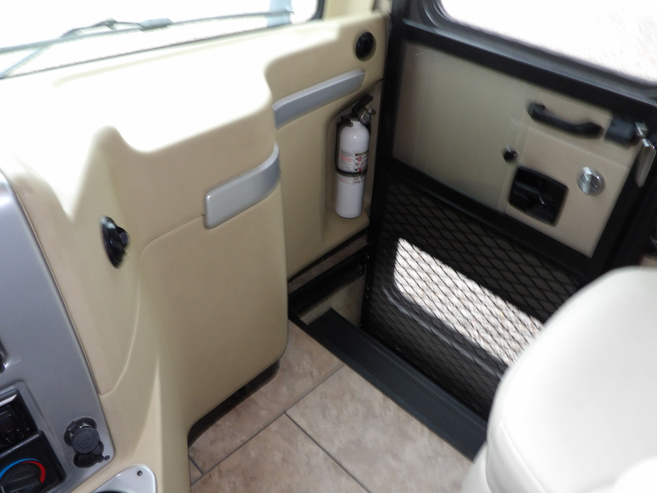 maintain a comfortable interior climate. Advanced safety features including CO, smoke, LP detectors, and fire extinguisher for peace of mind. Modern entertainment options with a built-in TV and exterior awning