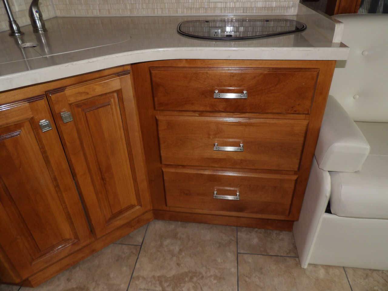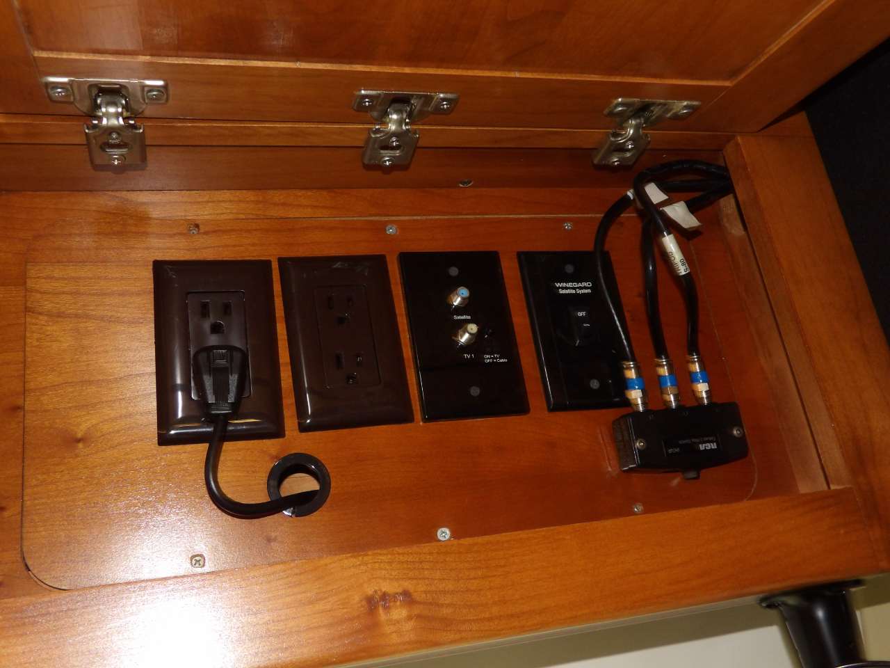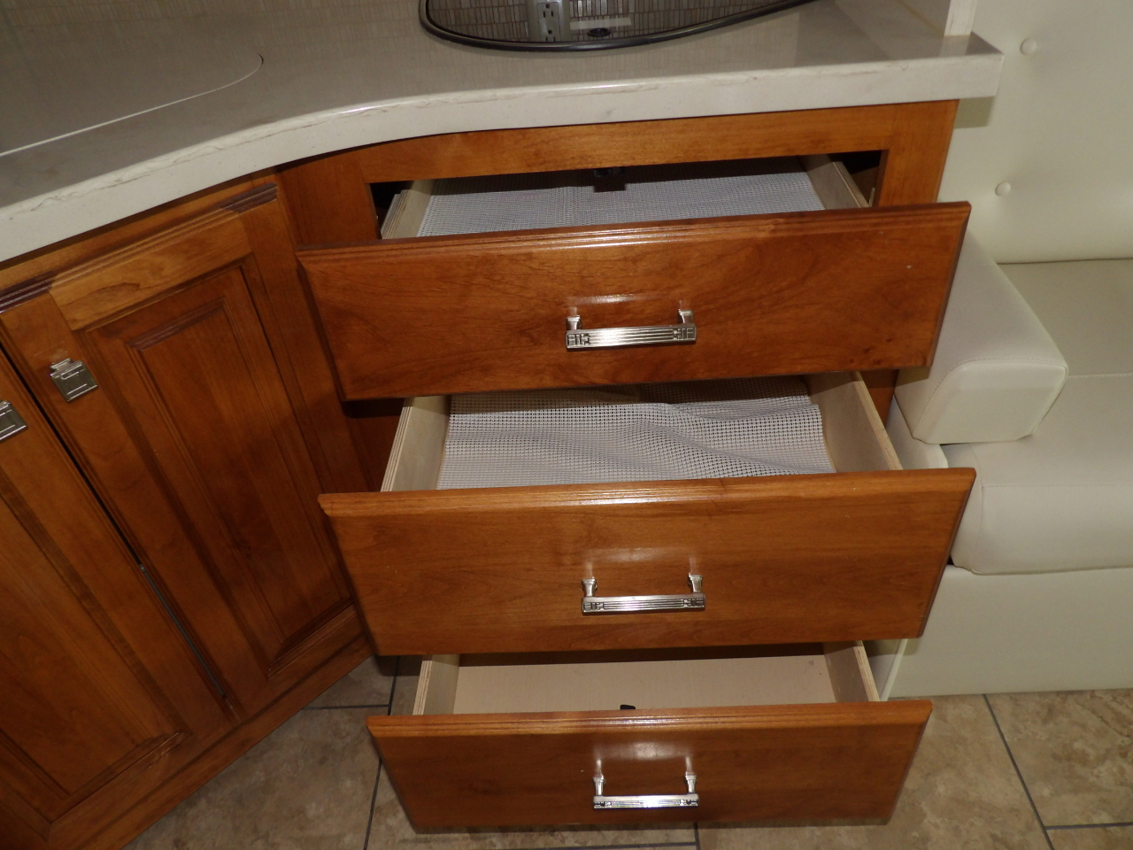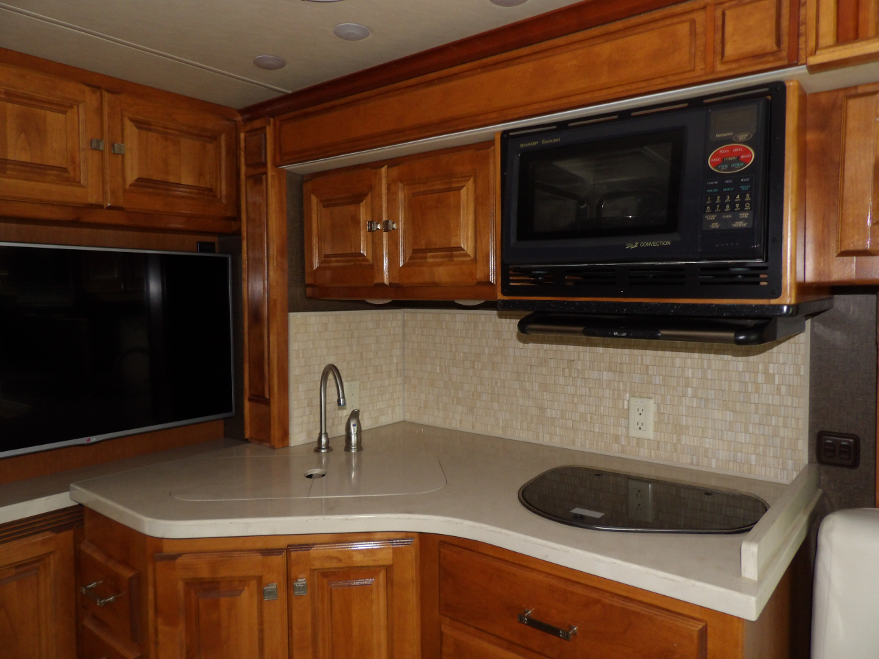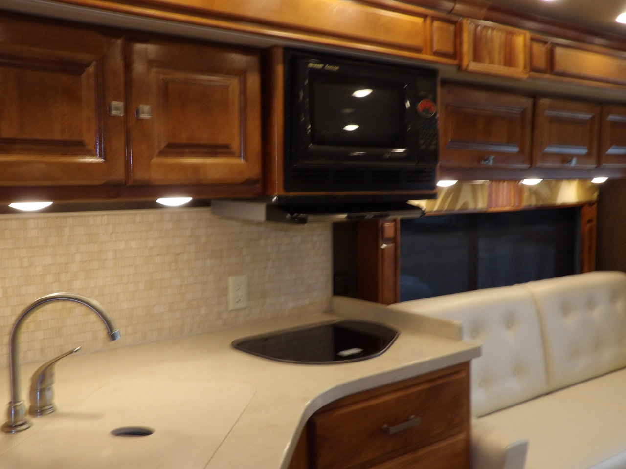 maintain a comfortable interior climate. Advanced safety features including CO, smoke, LP detectors, and fire extinguisher for peace of mind. Modern entertainment options with a built-in TV and exterior awning